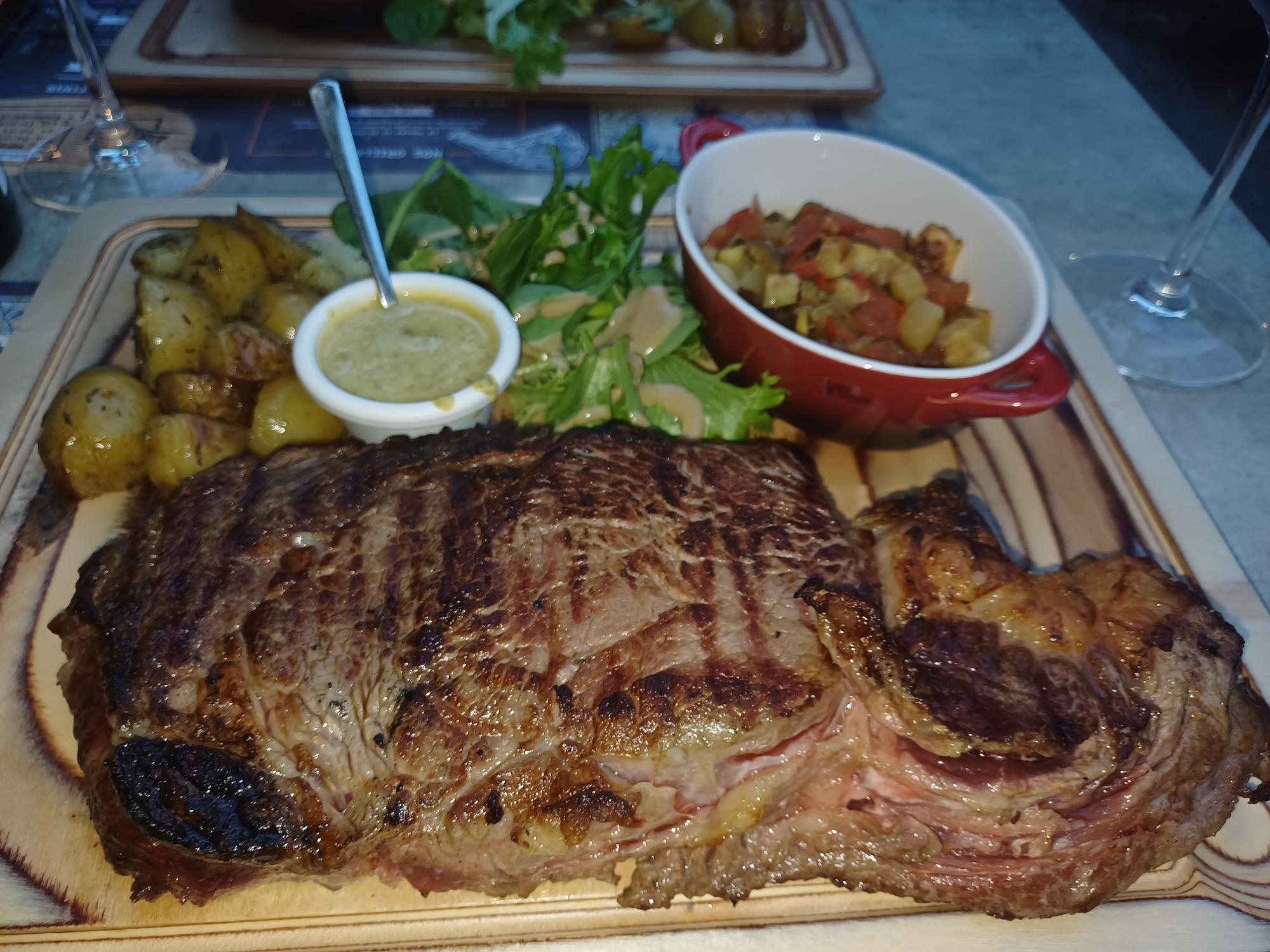 So how to describe the meal. A vegan would call it ‘disgusting’. A meat eater, ‘too much!” and a lover of beef, ‘spot on.’ The steak was bloody huge. Too much for Flashy. He should have ordered bread and two bottles of red. It, the wine, was very good and the whole wine list very reasonably priced.